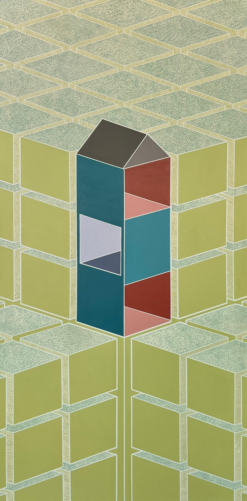Ainin Fadli is an emerging artist based in Selangor, Malaysia. Balancing her role as a full-time artist with that of a part-time assistant art teacher, Ainin delves into themes of home and space. She merges geometric abstraction with expressive elements, incorporating vibrant scribbles and contrasting textures. Her constructivist approach captures the delicate interplay between structure and fluidity, creating visual narratives that resonate with her audience.