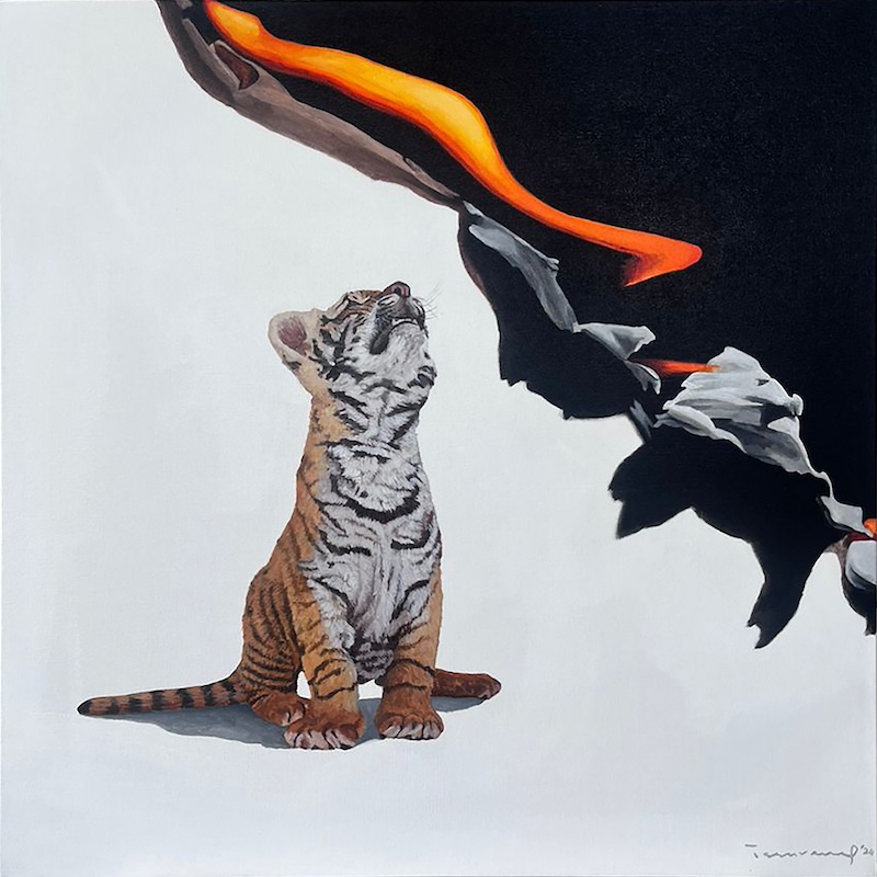 Blending hyper-realistic techniques and an air of surrealism, Issarezal captures a sense of curiosity and peculiarity through his work. Reflecting his upbringing by the sea, his subjects often see their heads replaced with coral forms, covering the expanse of their bodies. Posing his subjects with a sense of ease and relaxation, Issarezal captures a relationship between one and nature – one that is characterised by solitude, peace, and imagination.