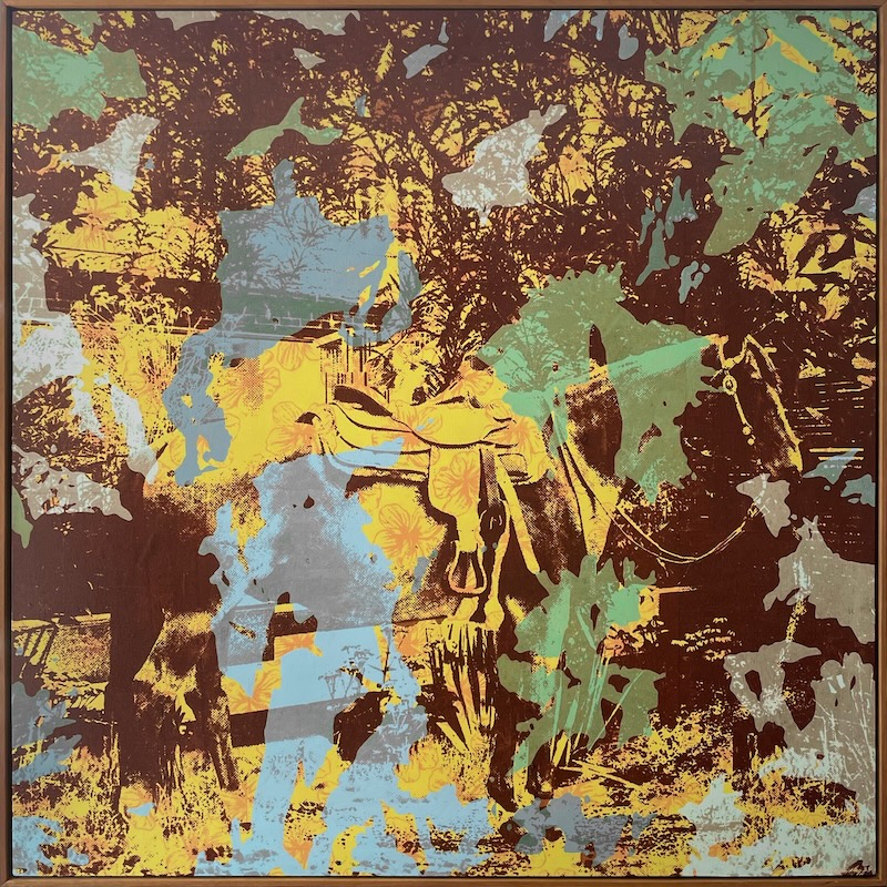 Syahmi often works with image transfer, silkscreen printing, oil paint, and industrial paint. Utilising techniques of repetition, his layering process creates spaces to align with the narrative. With colours chosen based on the mood, his artworks occasionally touch on social issues, political issues, or a reflection of the society he lives in. As an artist, he makes an effort to pay close attention to character, body language, mood, and scenery to build suspense and drama. Even though Syahmi’s artwork frequently addresses political and social issues, he also tries to convey the message in a tasteful, morally sound manner that aligns with the social and cultural practices of Malay and Muslim people.